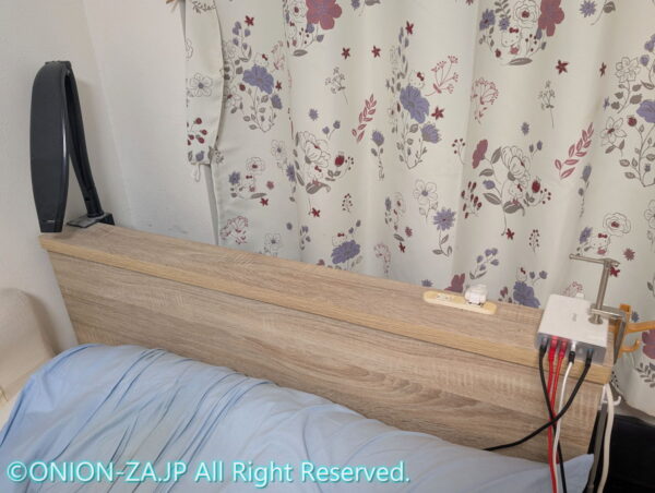 このヘッドボードは、目覚まし時計やメガネなどを置くための細長い板のような部分だが、ベッドによっては奥行きがとても狭い。筆者のベッドも例外ではなく、目覚まし時計だけでほぼ埋まってしまい、ミニオーディオや小物を並べる余裕はまったくなかった。