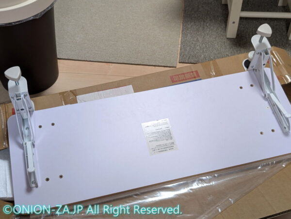 こうして、あっという間にデスクエクステンダーの組み立ては完成した。ダンボールの上で作業をすると、天板や床を傷つけないのでよい。