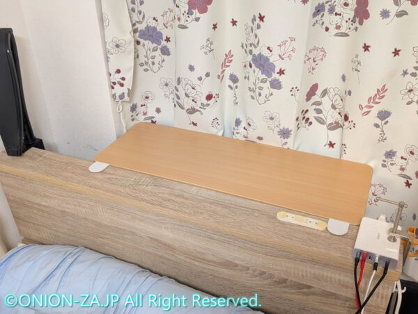 我ながら、机用パーツを寝室に転用するというアイデアは意外だが、使ってみると驚くほど自然で使いやすい。寝室のスペース問題をこういったアイテムで解決できるとは、正直思っていなかった。