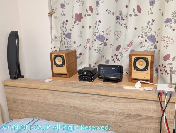 スペースが広がると、置きたいものがどんどん出てくる。筆者は小型スピーカーとDACアンプを並べ、寝室でも心地よい音を楽しめる環境を整えた。愛用しているDACアンプについては以下で紹介している。