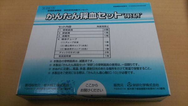 血液検査キットがこちら。あわてて撮影したので散らかってます。針と入れ物とか。