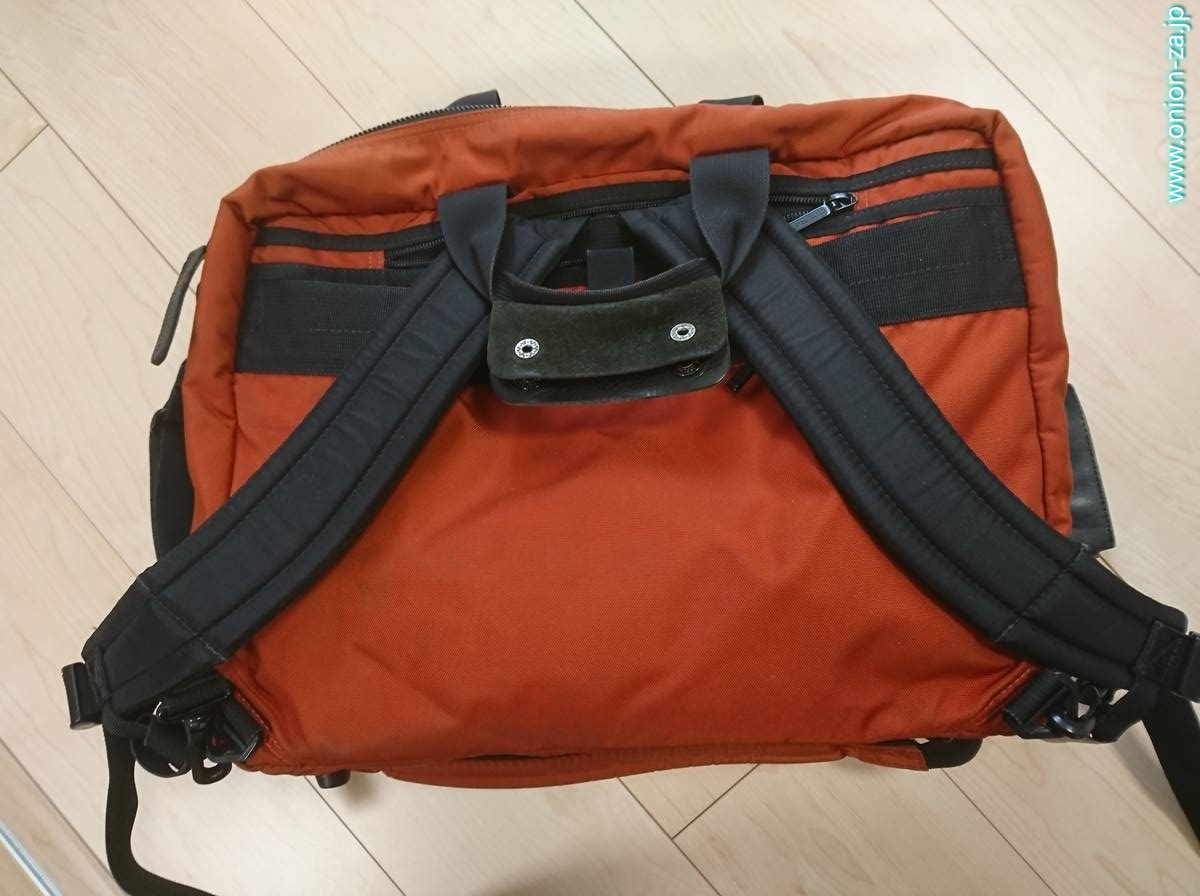 決め手はこの背面ショルダーベルト。リュックスタイルにもなるし収納すれば普通のブリーフケースにもなります。商談に遅刻しそうになっても走ることができますから。さらにこれのおかげで肩こりが減りました。