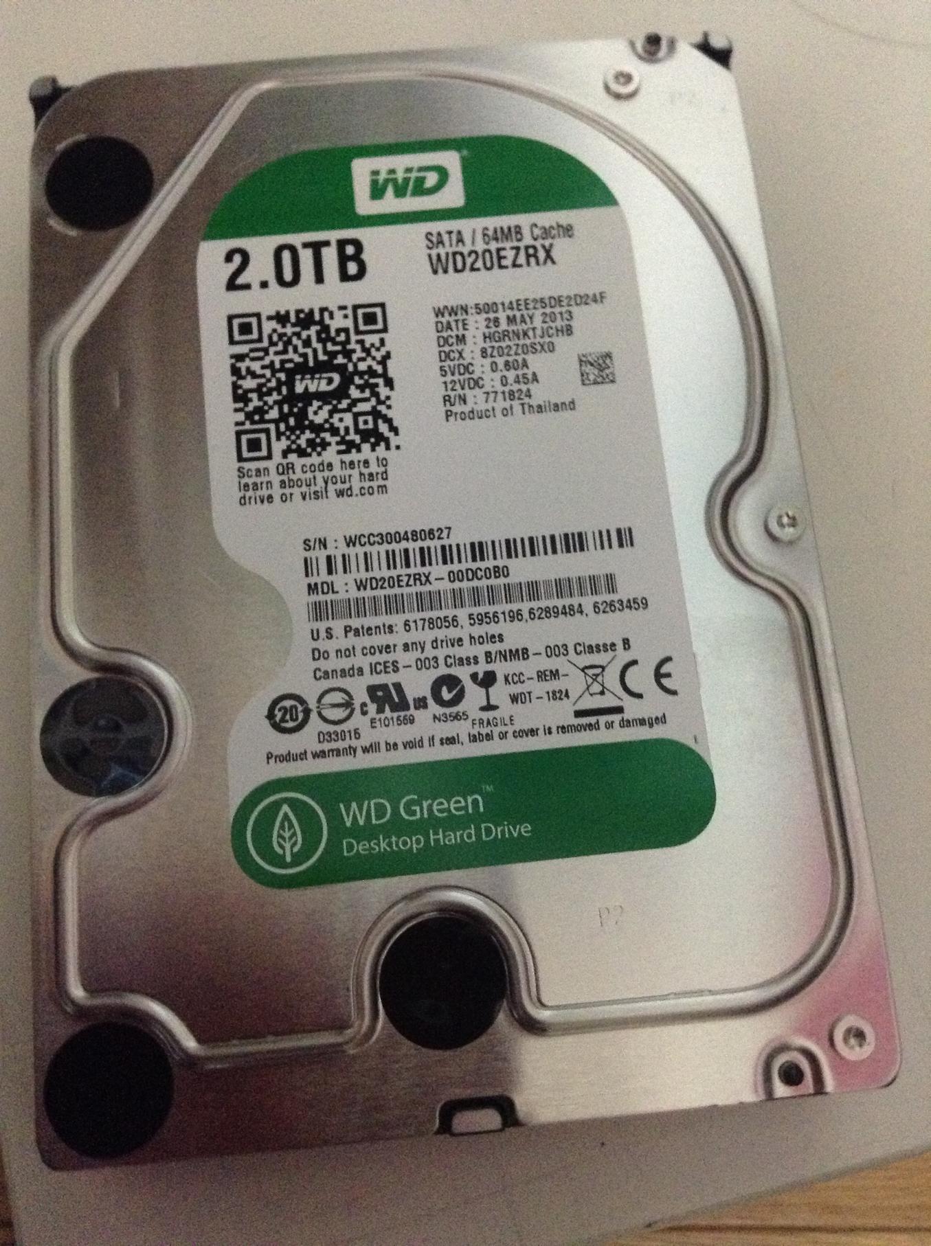 最近、少し高いけど信頼性が良いと評判のWESTERN DIGITALのWD GREEN WD20EZRX 2TBをポチりました。あー買っちゃった。