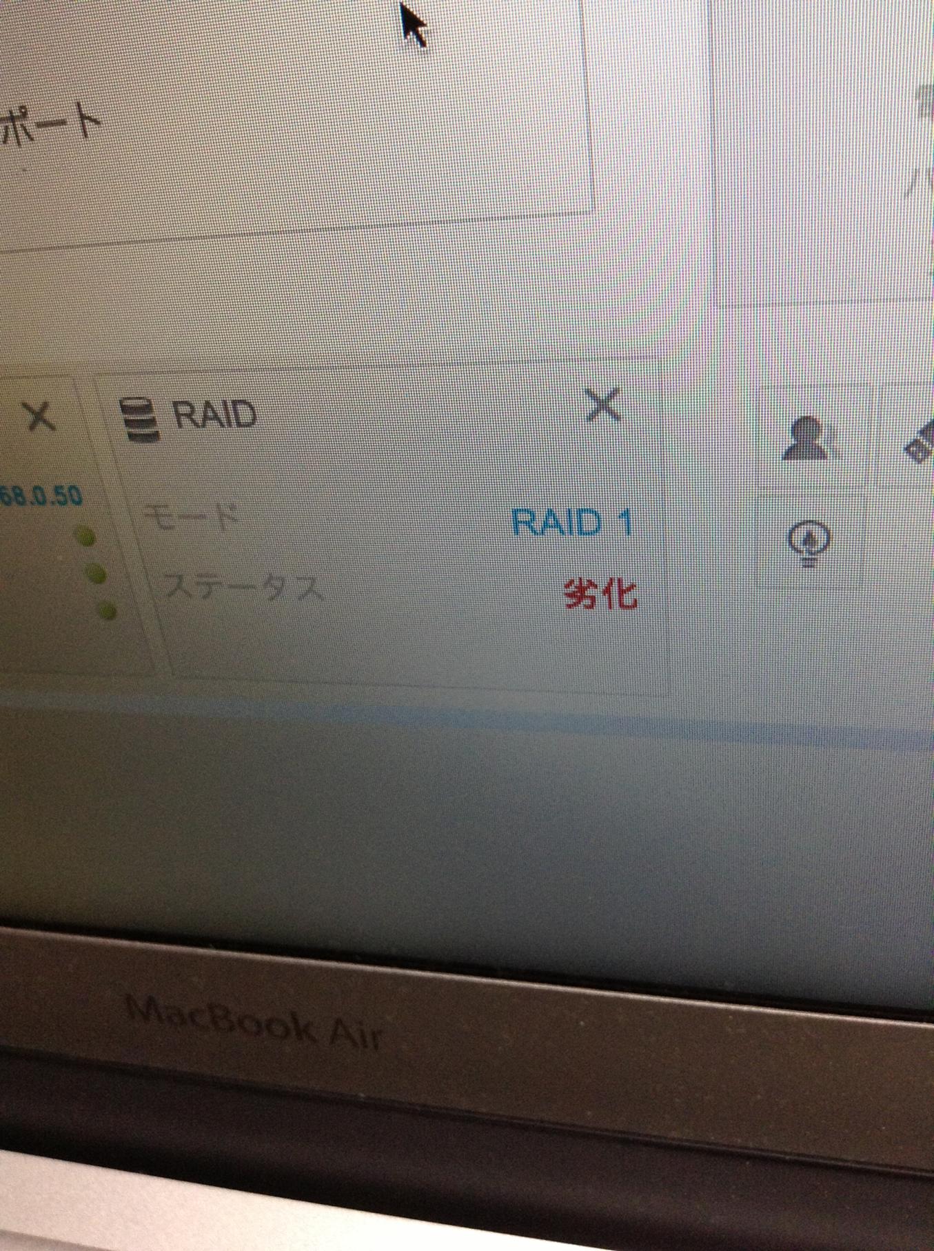 なになに。。RAIDのステータスが、、「劣化」??? 劣化ってなにそれこわい。もとが外国の製品のためか日本語翻訳がおかしいです。