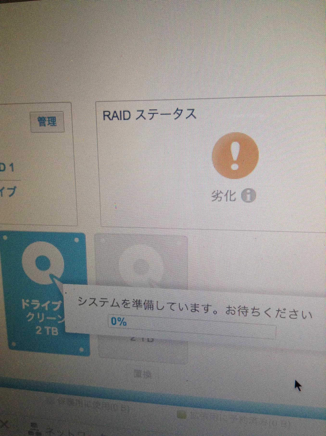 RAID1機能のあるNASで、ハードディスクが1本故障したため、ネットで新しくハードディスクを購入して交換することに成功しました。