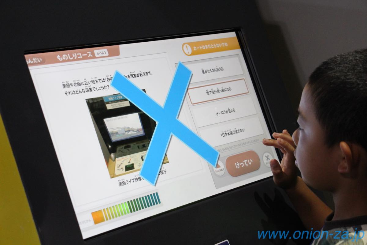 ひとしきり遊んだら次の展示室へ行く前にクイズラリー端末でクイズに挑戦します。クイズラリー端末は各展示室にあって、学んだことをその場で復習できる仕組みとなっています。スタンプラリーより有能ですな。正解すると2ポイントがもらえます。