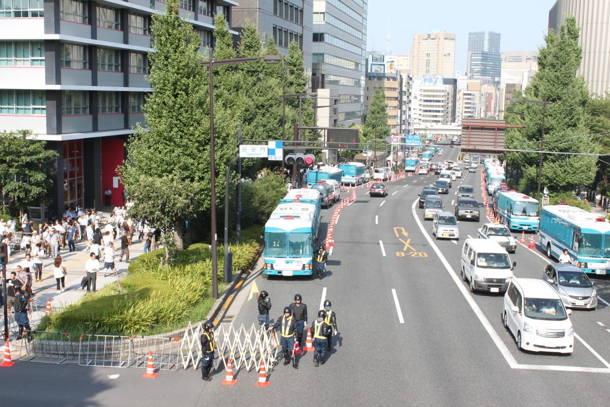 靖国神社と武道館の間にある歩道橋からパシャリ。厳戒態勢です。